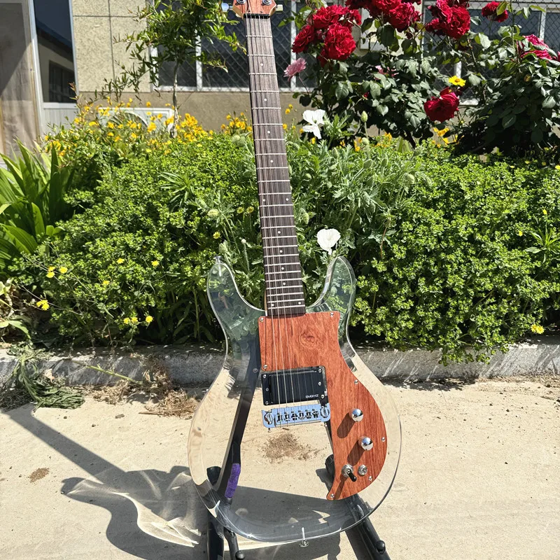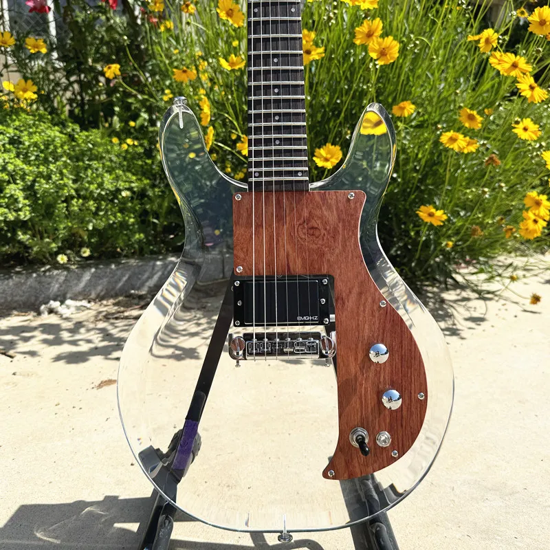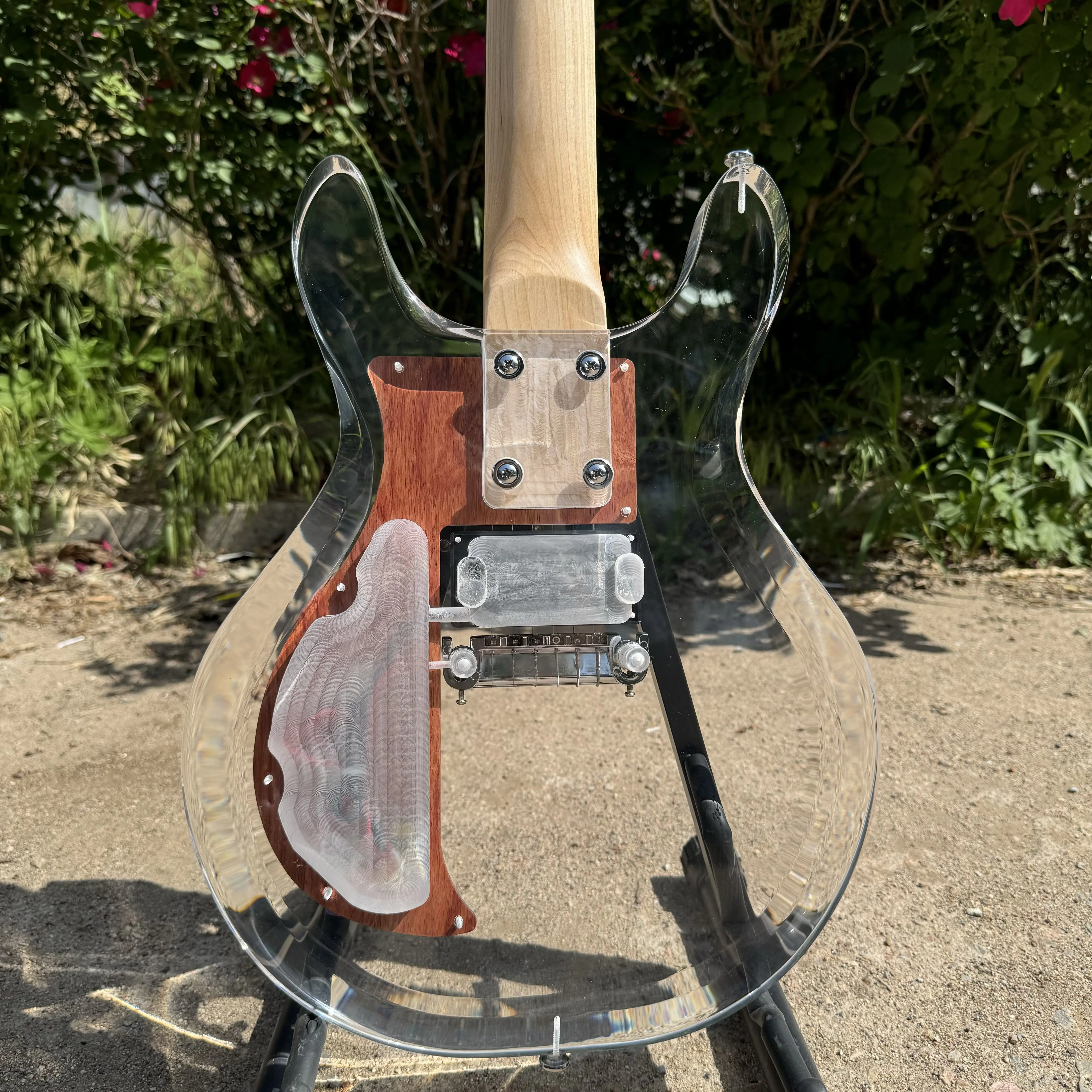 Vicers 24frets transparent acrylic guitar body, EMG pickup, maple neck, in stock, real picture of electric guitar